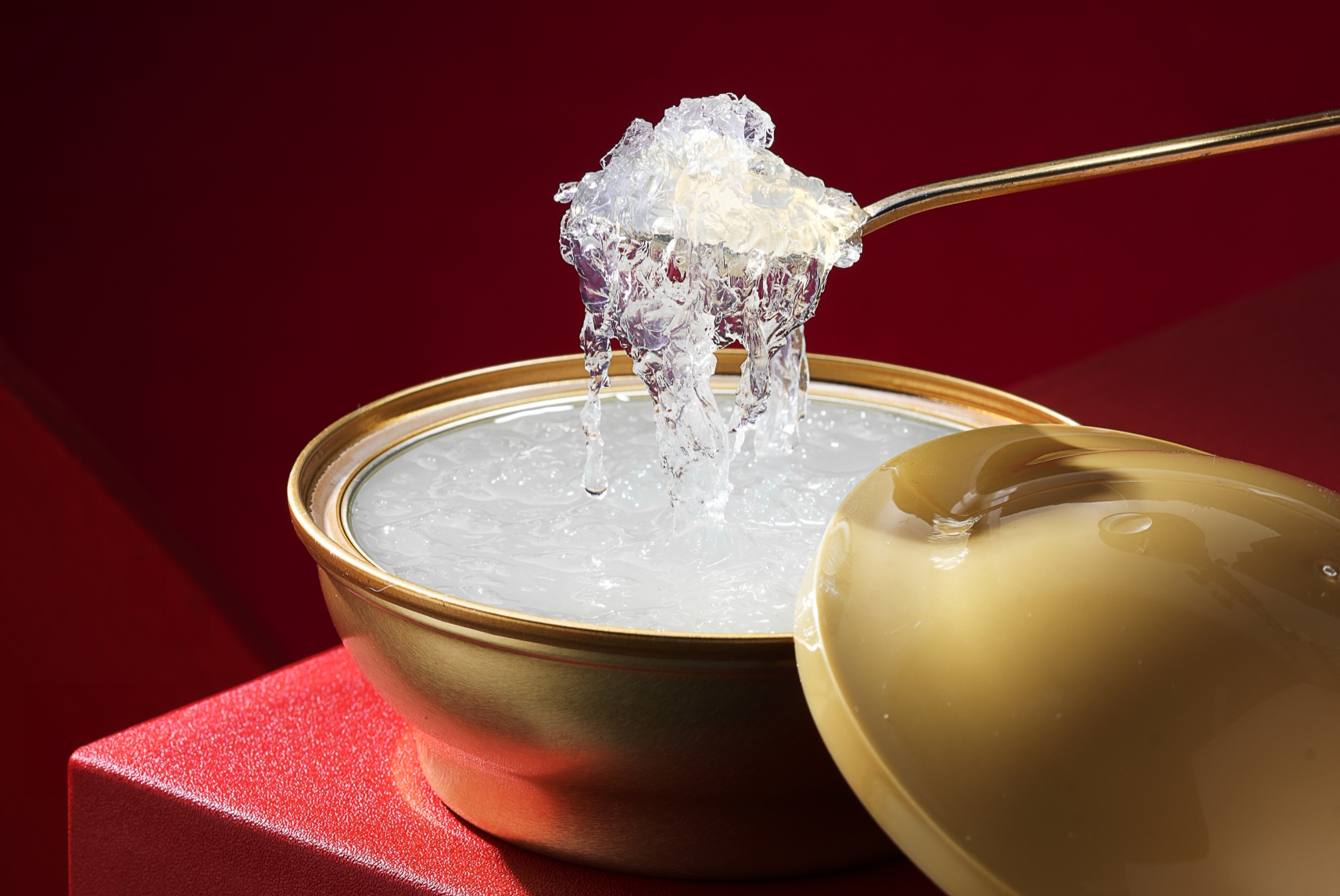 分段控温炖煮技术,模拟手工炖煮,析出燕窝中的蛋白质、氨基酸及燕窝酸等营养物质,口感鲜润爽滑,外观胶滑透亮。